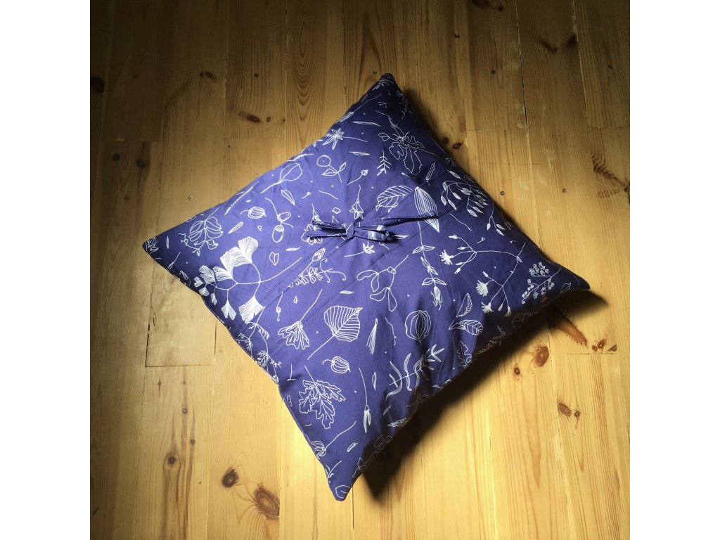 Povlak na polštář z autorské látky s motivem rostlin a bylin, pečlivě ušitý do posledního stehu. Zavazování na mašličku je nejen praktické, ale vytváří i milý detail.